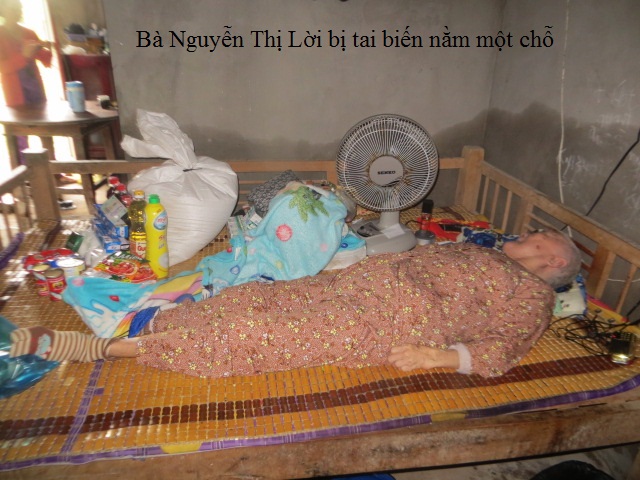 Huynh Thi Tron, 86 years old, resides at 113/2 Thanh Qui hamlet, Thanh Phu village, Thanh Phu district, Ben Tre province. She suffered a stroke and is bed ridden.