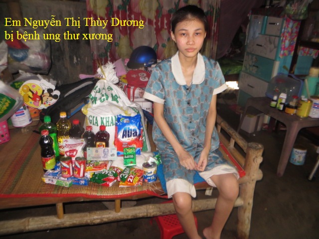 Nguyen Thi Thuy Duong, 25 years old, resides at 99/2 Thanh Hoa A hamlet, Thanh Phu village, Thanh Phu district, Ben Tre province. She suffers bone cancer.