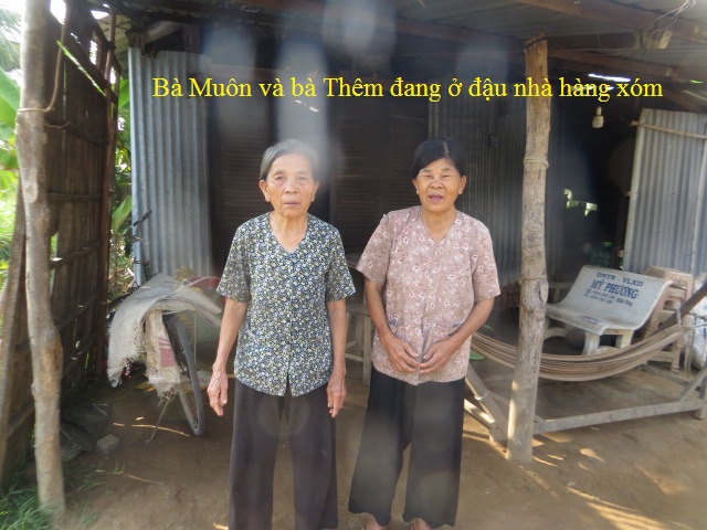 43. Bà Nguyễn Thị Thêm 74 tuổi và bà Nguyễn Thị Muôn, 65 tuổi, cả hai bà không có nhà cửa đang ở đậu nhà hàng xóm số nhà 127/3, ấp Thạnh An, xã Bình Thạnh, Thạnh Phú, Bến Tre.