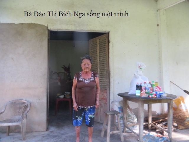 Dao Thi Bich Nga, 76 years old, resides at 364/3 Thanh Khuong B hamlet, My Hung village, Thanh Phu district, Ben Tre province. She lives alone and has no kinships.