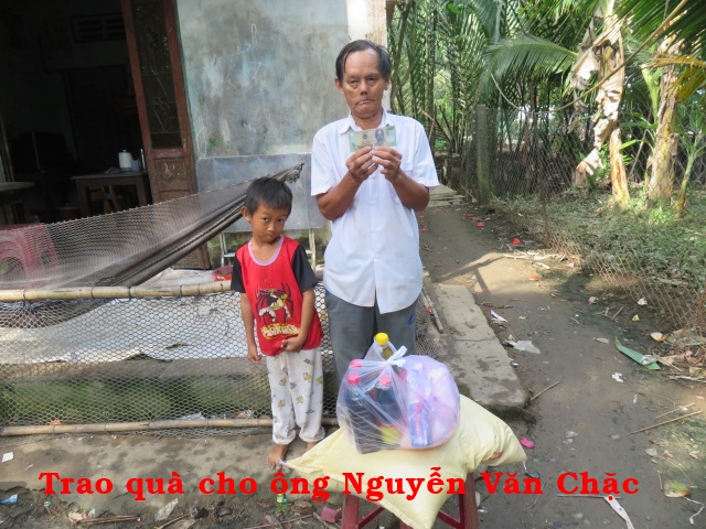 63. Ông Nguyễn Văn Chặc, 77t, nhà ở ấp Hòa Bình, xã Hòa Lộc, huyện Mỏ Cày Bắc, tỉnh Bến Tre. Ông bị tâm thần nhẹ, hiện tại ông sống với 1 con trai và 1 cháu. Hàng ngày ai thuê gì thì làm nấy.