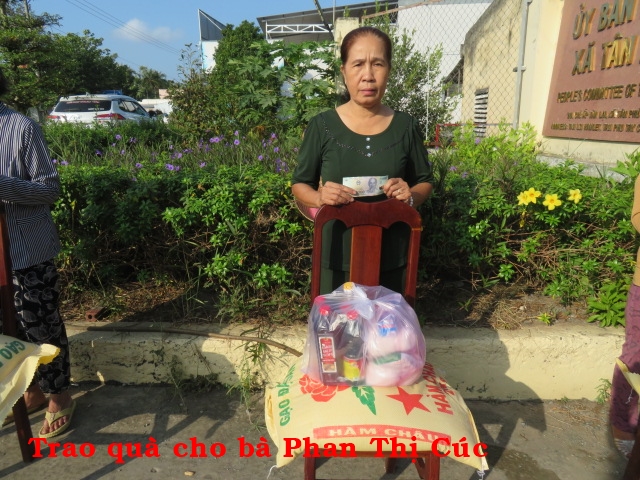 73. Bà Phạm Thị Cúc, 63t, nhà ở ấp 4, xã Tân Phú Tây, huyện Mỏ Cày Bắc, tỉnh Bến Tre. Bà không chồng, hiện tại bà sống với mẹ già nay 90t nằm 1 chỗ.