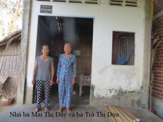 Ms. Mai Thi Day, 89 years old and Ms. Tra Thi Dua, 70 years old, house number 30/2, An Ninh hamlet, An Qui commune, Thanh Phu district, Ben Tre province