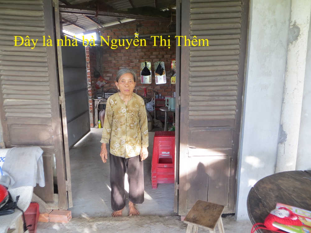 2. Bà Nguyễn Thị Thêm, 76 tuổi. Bà không có nhà đang ở đậu nhà hàng xóm tại ấp Thạnh An, xã Bình Thạnh, huyện Thạnh Phú, tỉnh Bến Tre cũ, hiện nay là xã Thạnh Phú, tỉnh Vĩnh Long.