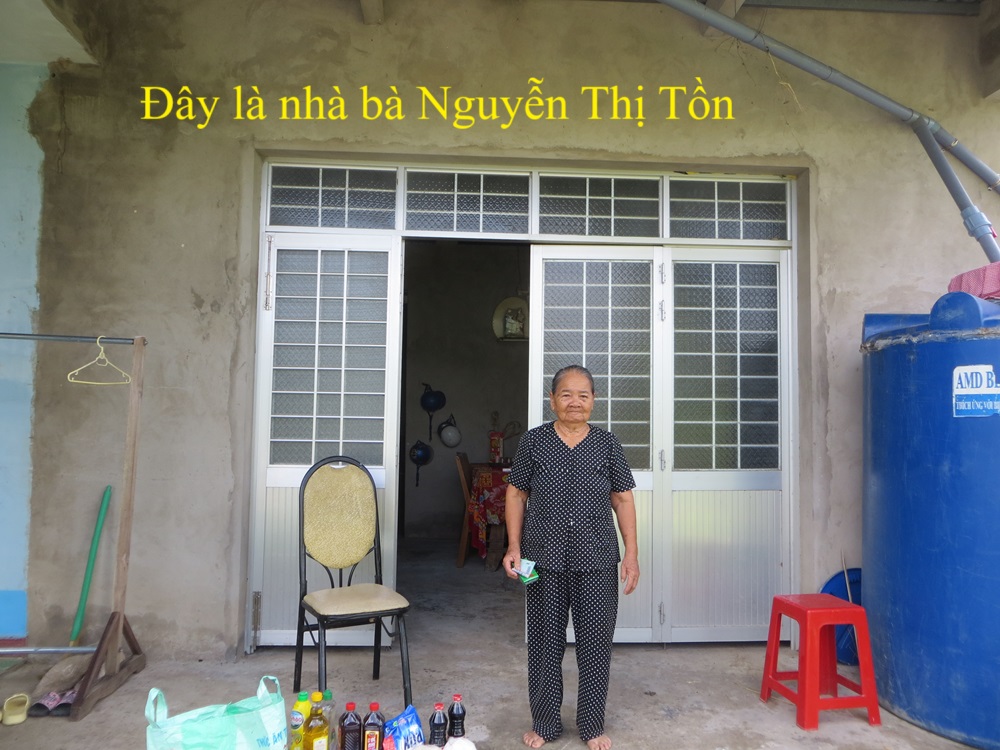 Mrs. Nguyễn Thị Tồn, 84 years old. She currently resides at 72/2, Thạnh An Hamlet, Bình Thạnh Commune, Vĩnh Long Province.