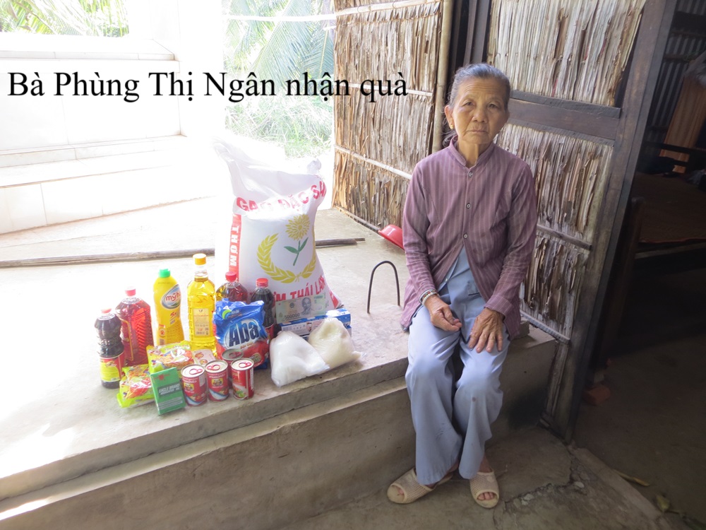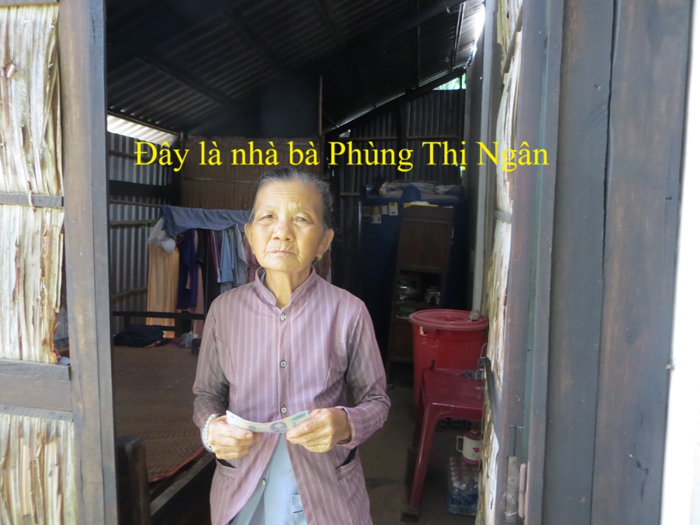 Mrs. Phùng Thị Ngân, 66 years old. She is unable to walk due to a fall. She currently resides at 10/2, Thạnh An Hamlet, Bình Thạnh Commune, Vĩnh Long Province.