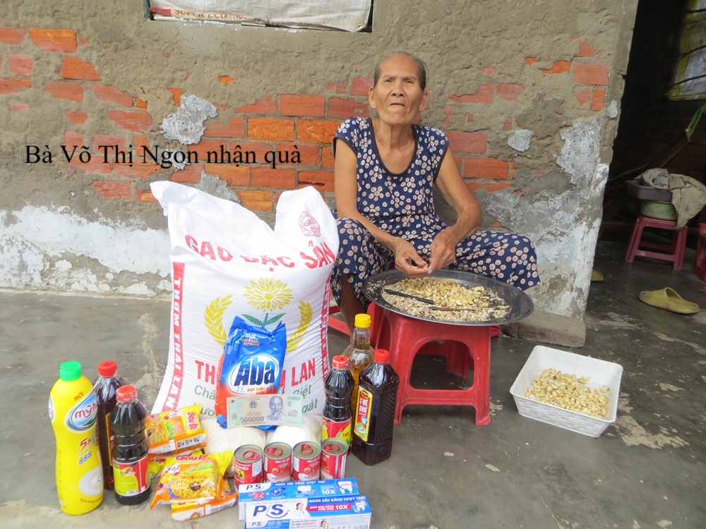 Mrs. Võ Thị Ngon, 75 years old. She is frail due to old age and lives alone at 39/3, Thạnh An Hamlet, Bình Thạnh Commune, Vĩnh Long Province.