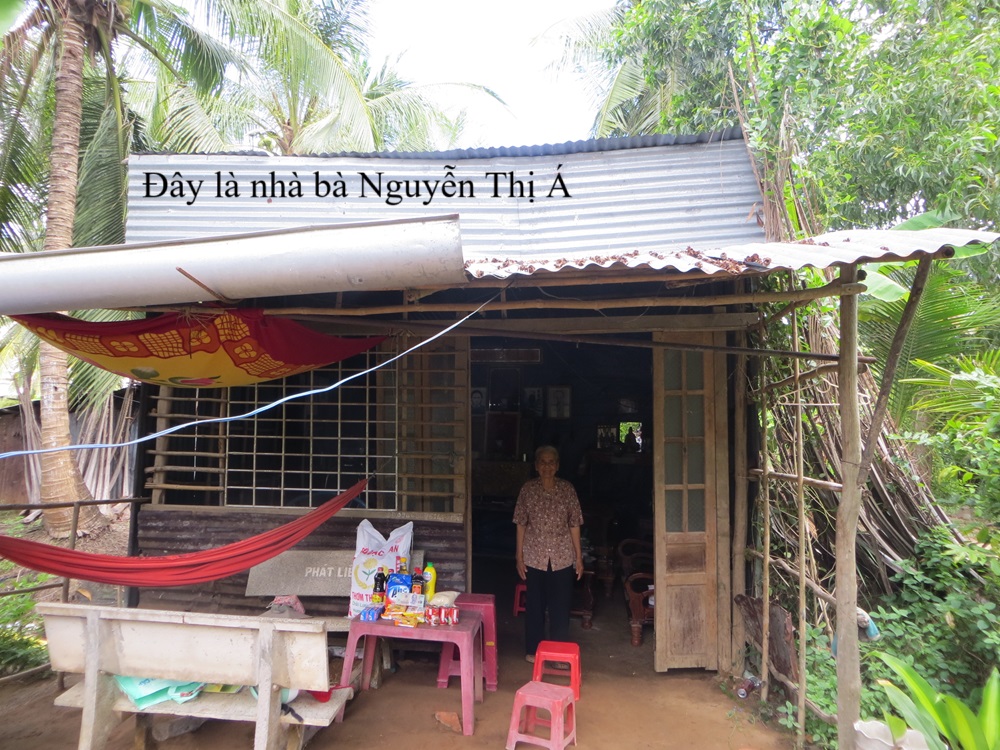 Mrs. Nguyễn Thị Á, 78 years old. She has heart disease and high blood pressure. She lives with her daughter-in-law at 13/4, Thạnh An Hamlet, Bình Thạnh Commune, Vĩnh Long Province.