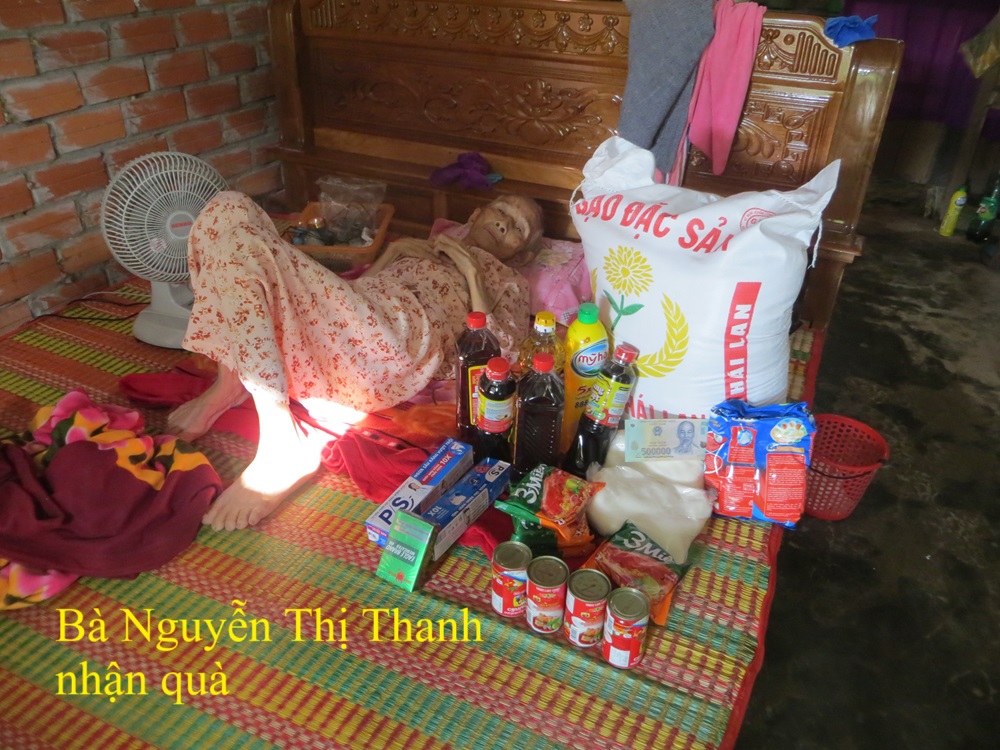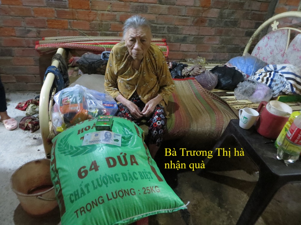 Mrs. Trương Thị Hà, 81 years old. She is bedridden due to age-related illness. Her neighbors assist her with food and daily activities. She lives in Quarter 2, Thạnh Phú Town, now Thạnh Phú Commune, Vĩnh Long Province.