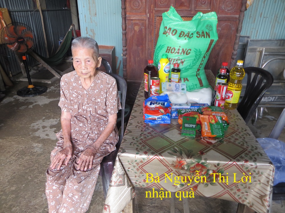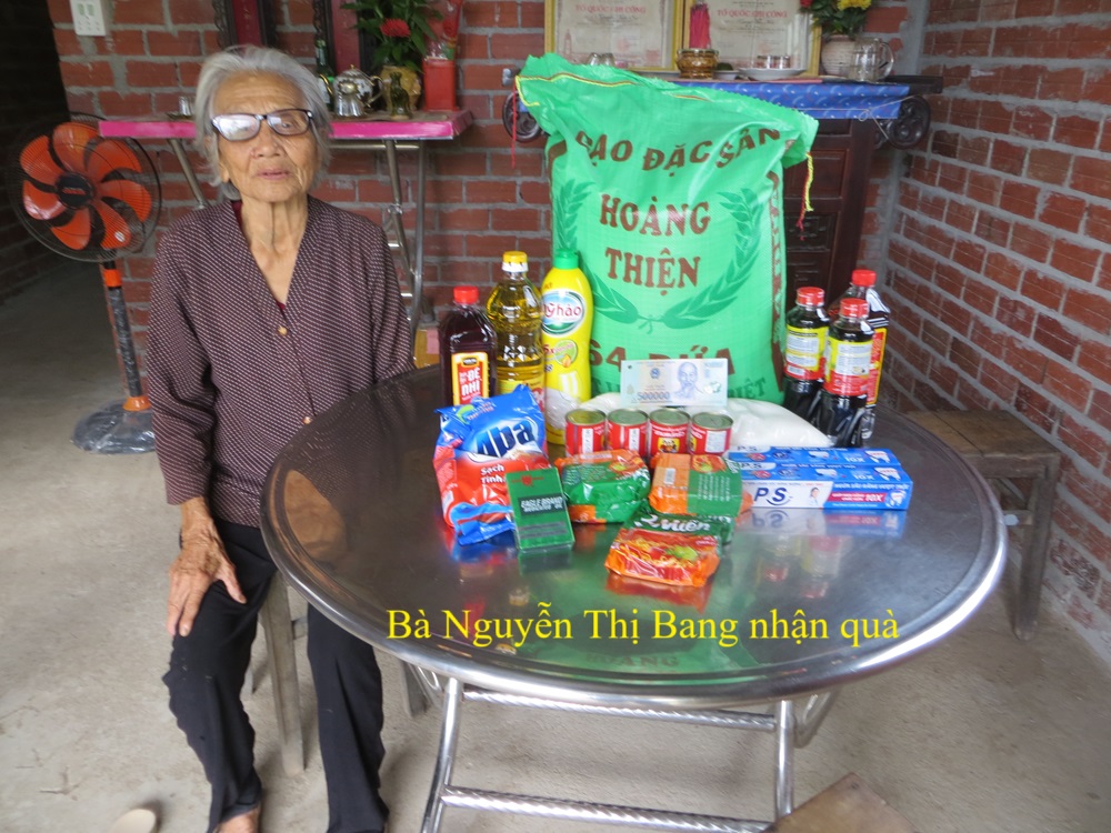 Mrs. Nguyễn Thị Bang, 86 years old. She suffers from high blood pressure and must take lifelong medication. She lives alone at 24/1, Thạnh Quí A Hamlet, Bình Thạnh Commune, now Thạnh Phú Commune, Vĩnh Long Province.