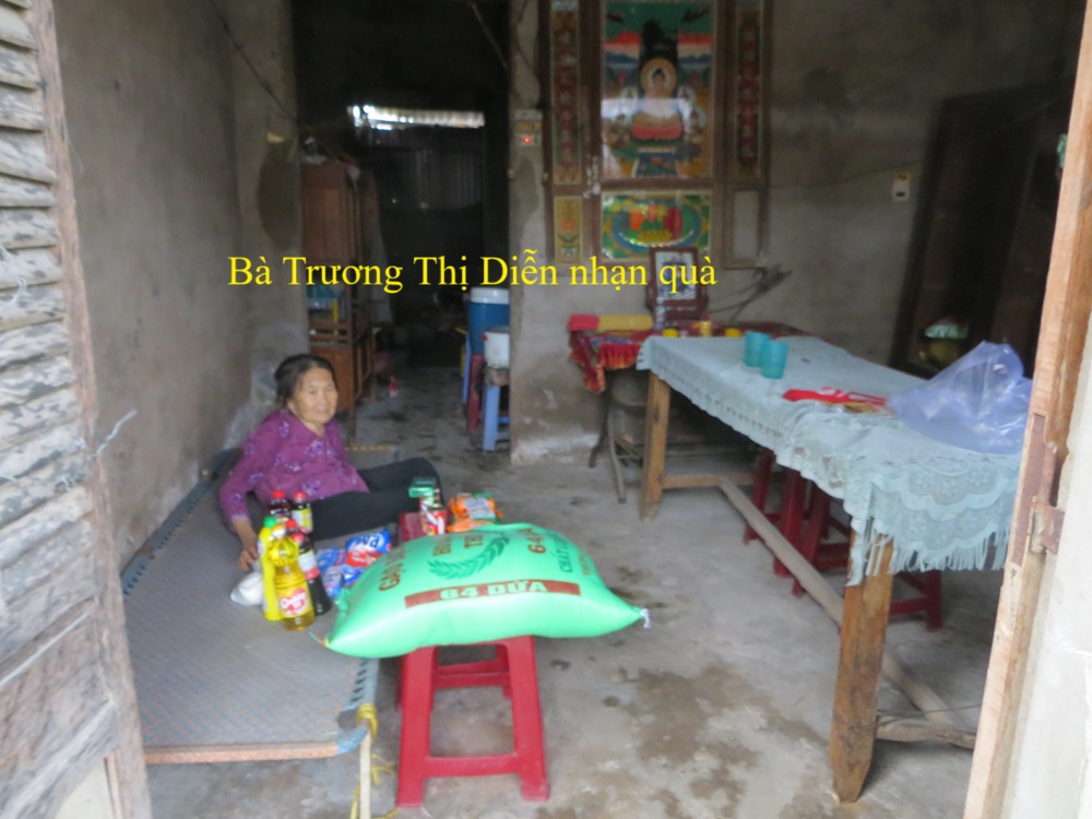 Mrs. Trương Thị Diễn, 85 years old. She had a stroke and is immobile. She lives with her mentally ill daughter, and all caregiving is provided by her eldest daughter who lives nearby. She resides at 9/4, Thạnh Lợi Hamlet, Bình Thạnh Commune, now Thạnh Phú Commune, Vĩnh Long Province.