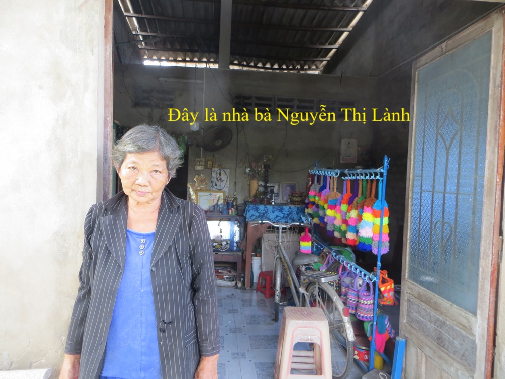 Mrs. Phạm Thị Lành, 60 years old. She has had a mental illness since childhood and therefore has no family. She lives alone at 28/1, Thạnh Quí A Hamlet, Bình Thạnh Commune, now Thạnh Phú Commune, Vĩnh Long Province.
