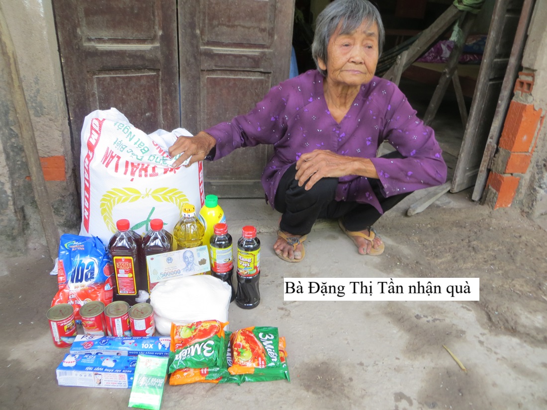 Mrs. Đặng Thị Tần, 89 years old. She lives alone without anyone to care for her at 17/1, Quí Đức A Hamlet, Quới Điền Commune, Thạnh Phú District, Bến Tre Province.
