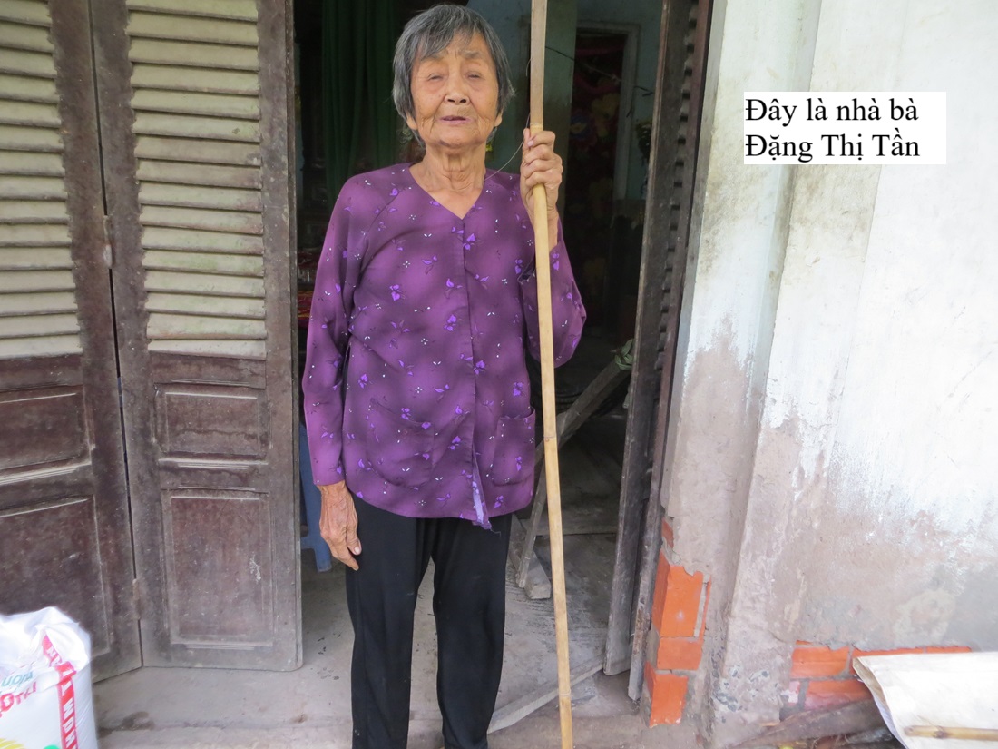 66. Bà Đặng Thị Tần, 89 tuổi. Bà sống chỉ một mình không người chăm sóc tại số nhà 17/1, ấp Quí Đức A, xã Quới Điền, huyện Thạnh Phú, Tỉnh Bến Tre.