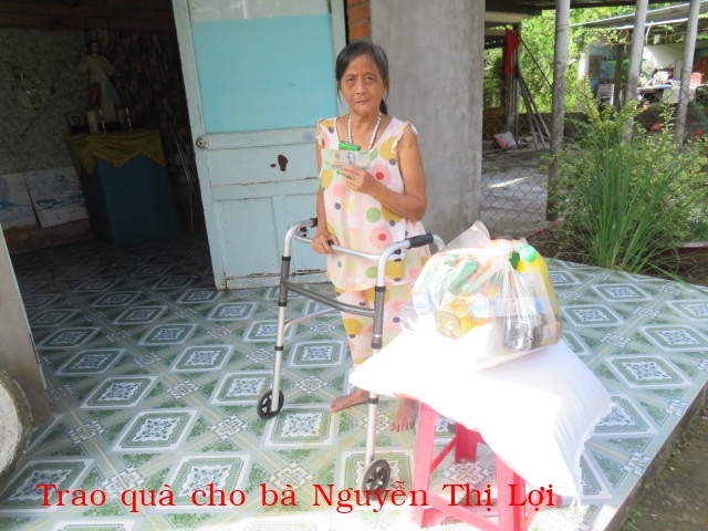 Mrs. Nguyễn Thị Lợi, 59 years old, lives near Tú San Church, Hương Mỹ Commune, Vĩnh Long Province. She has a congenital leg disability, no husband or children, and is currently living alone.