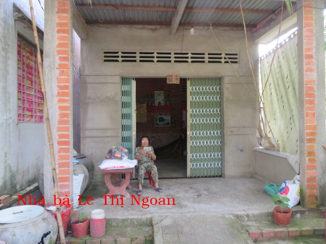 74. Bà Lê Thi Ngoan, 73 tuổi, nhà ở gần nhà thờ Tú San, Xã Hương Mỹ, Tỉnh Vĩnh Long. Bà không chồng con, không ruộng đất. Hiện tại đang sống một mình.