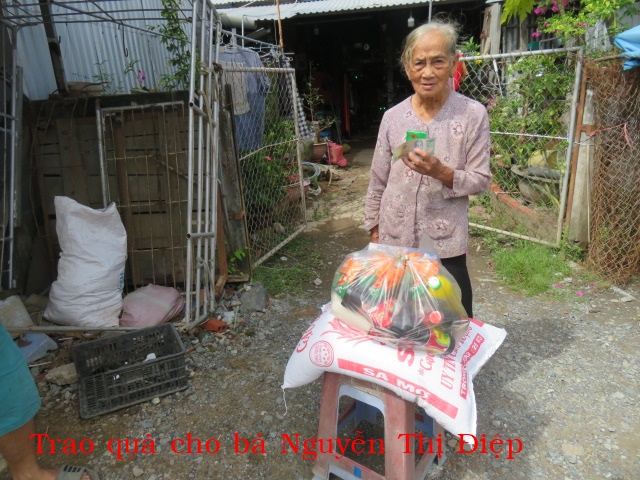 99. Bà Nguyễn Thị Điệp, 79 tuổi, nhà ở ấp An Trạch Tây, Xã Thành Thới, Tỉnh Vĩnh Long. Bà không con cháu hiện tại đang sống một mình.