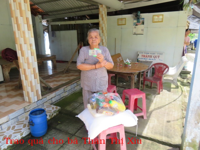 82. Bà Thân Thị Xiếu, 79 tuổi, nhà ở ấp An Trạch Đông, Xã Thành Thới, Tỉnh Vĩnh Long. Bà bị tai nạn cụt một chân, không con. Hiện tại đang sống một mình.