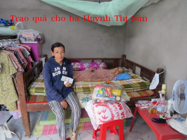 122. Bà Huỳnh Thị Sùn, 88 tuổi, nhà ở Khâu Băng, Xã Thạnh Phong, Tỉnh Vĩnh Long. Bà bị tai biến nằm 1 chổ, hiện tại bà sống với người con gái không chồng con. Hằng ngày đi bán vé số về nuôi bà.