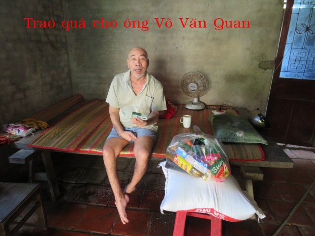 127. Ông Võ Văn Quan, 65 tuổi, nhà ở Bồn Bồn, Xã Thạnh Phong, Tỉnh Vĩnh Long. Ông bị tai biến liệt nữa người, vợ ông bị suy thận giai đoạn cuối. Gia đình rất khó khăn.