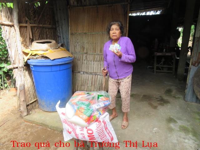 121. Bà Võ Thị Lục, 66 tuổi, nhà ở Cồn Đông, Xã Thạnh Phong, Tỉnh Vĩnh Long. Bà sống với 3 đứa cháu còn nhỏ (cha mẹ bỏ cháu). Nhà không ruộng đất, hằng ngày ai thuê gì làm nấy.