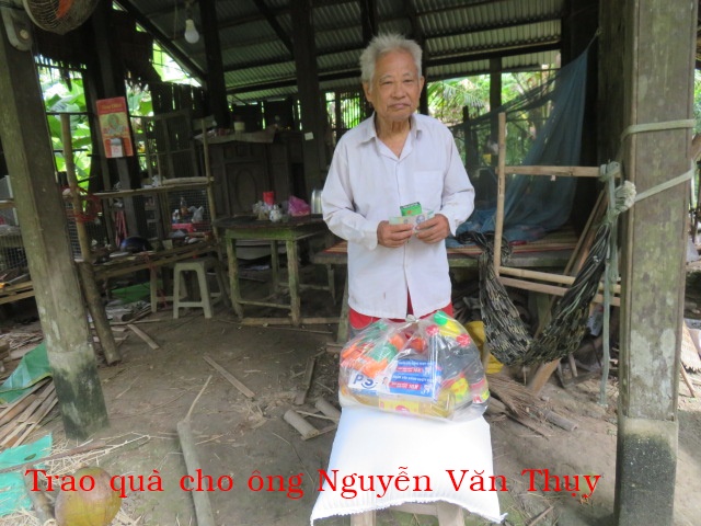 Mr. Nguyễn Văn Thuỵ, 78 years old, lives in Sùng Tân Hamlet, Nhuận Phú Tân Commune, Vĩnh Long Province. He has no wife or children and is currently living alone.