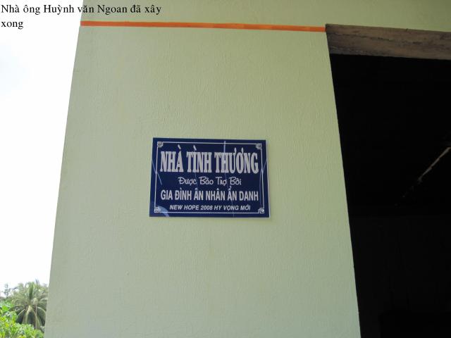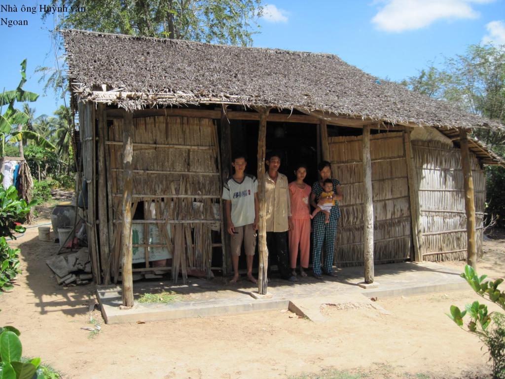 Ông Huỳnh văn Ngoan, 35 tuổi. Địa chỉ: 107/4 ấp 5 xã Thạnh Phú Huyện Thạnh Phú. Gia đình có 5 người vợ chồng và 3 con. Hai con lớn đang hoc lớp 9 và lớp 7, đứa nhỏ 6 tháng tuổi hằng ngày đi cuốc đất làm thuê, phụ hồ (cu li) kiếm tiền về mua gạo nhà sắp sập không tiền cất lại, rất cần nhà ở.