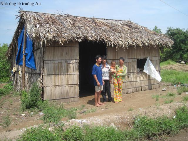 Lê Trường An - 36 tuổi, chưa có số nhà, ở Cồn Bửng, Xã Thạnh Hải, Huyện Thạnh Phú. Nhà có 4 người, vợ chồng, 1 em và 1 con. Hàng ngày ai thuê gì làm nấy, cuộc sống rất vất vả khó khăn. Rất cần nhà.