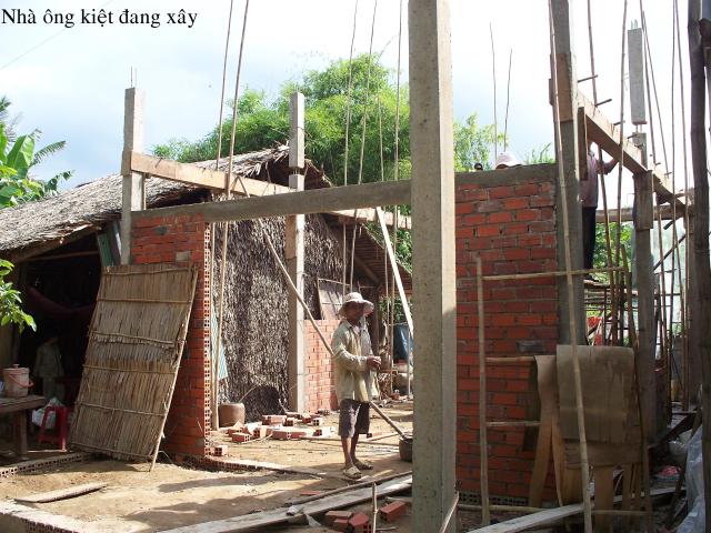 Mr Pham Tuan Kiet, age 35, presently residing at hamlet 5, Thanh Phu village in a family of 4: he collects recycle bottles for resale; his wife working at home, making brooms (10 per day, 1000 VN dong each); his 2 children going to school. They do not own any land; living in destitute; having no means to fix up the dilapidated house.