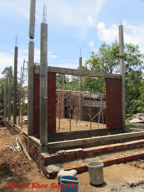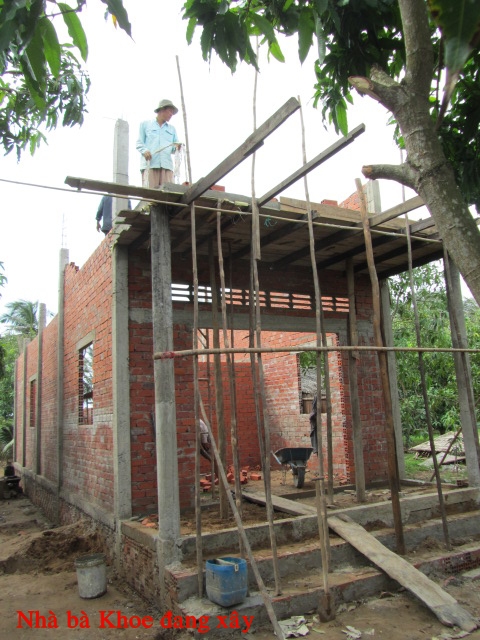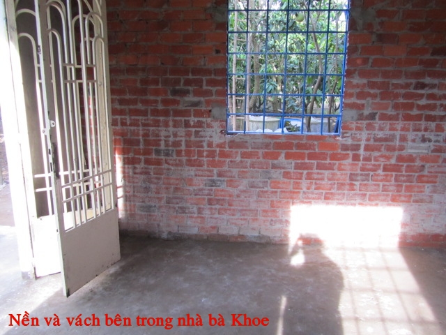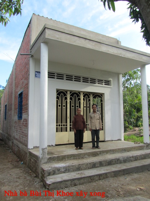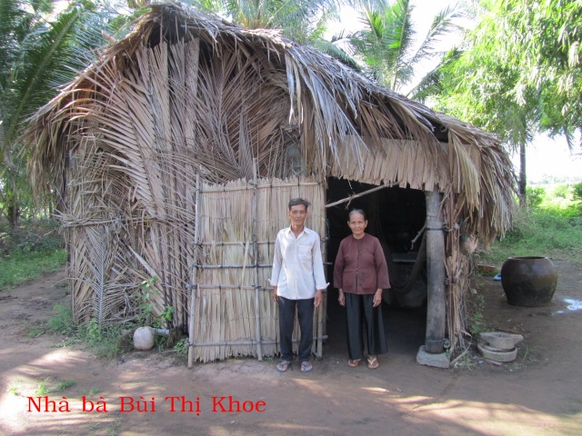 Mrs. Bui Thi Khoe, age 75, is residing at Ho Co, Thanh Hai Village. Her 3 children got married and moved out on their own. She and her 42 year-old son with light mental trouble are staying at a neighbor’s house. She owns a house foundation but cannot afford to have a shelter built on it. Mother and son earn their living by doing odds and ends for people who hire them.