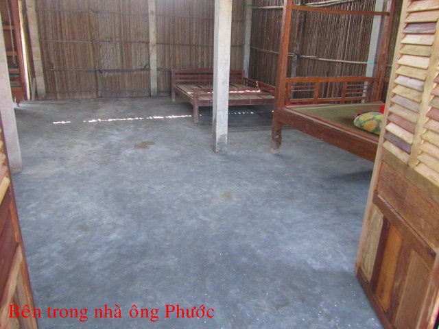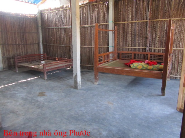 Mr. Ho Van Phuoc, age 35, is residing in a house with no number in Voi Duoc, Thanh Hai, Thanh Phu with his wife and their 3 children, the oldest is 13 and the youngest 2. They have no land to work on. Every day he works for hire. The house that they are putting up is overflowed about 20cm at high tide. The landlord is asking them to leave. They were given a floor to build a house on but they have no money to do it.