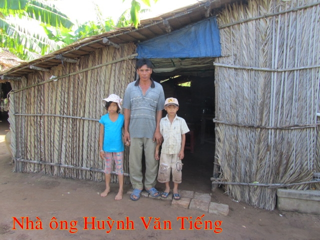 Huỳnh Văn Tiếng 39t chưa có số nhà ở Cồn Mít xã Thạnh Phong huyện Thạnh Phú. Lúc trước ông có vợ và có nhà riêng,vì vợ có người tình mới nên đuổi ông và 2 con ra khỏi nhà vì nhà, đất ở bên vợ. Hiện tai ông đang ở đậu nhà người thân, hàng ngày đi vác củ săn thuê để kiêm sống, Vì đi làm thuê mà phải nuôi 2 con đi học nên cuộc sống rất vả khó khăn,đứa con lơn nay 11t và con nhỏ 10t . Chủ nhà hiện tại không cho ở nửa mà ông không có tiền cất nhà.