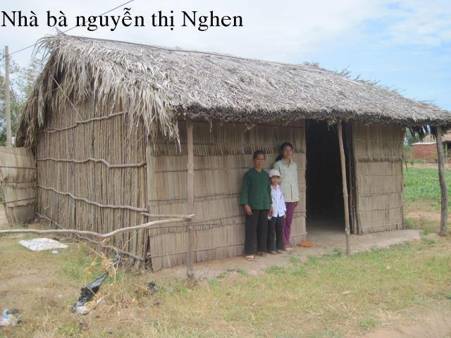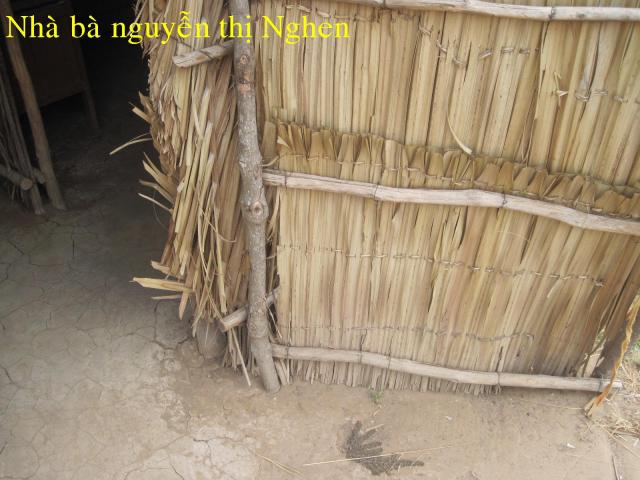 Bà Nguyễn Thị Nghen 34 tuổi chưa có số nhà, ở cồn rừng, xã Thạnh Hải, có một con và sống chung với người mẹ, nay đã lớn tuổi, không ruộng đất, hàng ngày ai thuê gì làm nấy. Có chồng nhưng chồng đã bỏ đi không về.