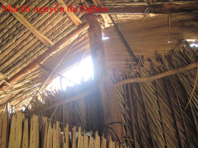 Mrs. Nghen Thi Nguyen, 34 years old, from Cồn Rừng, hamlet Thạnh Hải. Mrs. Nguyen has one child and lives with her old mother. They have no land to cultivate and can only do odd jobs for others. Her husband had abandoned her and the family.