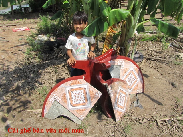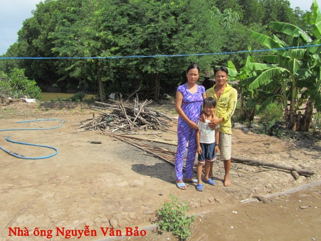 Mr. Nguyen Van Bao, age 28, is residing at Con Cao, Thanh Phong Village, Thanh Phu with his wife and child. His wife is 5 month pregnant with their second child. His main job is catching crabs at the seaside every night for the market which brings him around $3. At high tides, when there are no crabs to catch, he would work as a hired hand. Two moths ago, their house was torn down by the whirl wind and the incident almost killed his wife and kid inside the house. They are temporarily putting up at their neighbor’s house, not able to rebuild their own house.