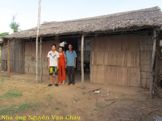 Nguyễn Văn Châu 40 tuổi, chưa có số nhà, ở Cồn Rừng xã Thạnh Hải. Có vợ và 2 con. Cuộc sống hàng ngày đi cuốc cỏ, tỉa đậu, nhổ cỏ thuê, nói chung hàng ngày ai thuê gì làm nấy. Cuộc sống không ổn định mỗi ngày thu nhập được khoãng 3 đến 5 USD nhưng không ổn định, lúc có lúc không. Nhà cột chôn hiện tại đang bị đứt chân.
