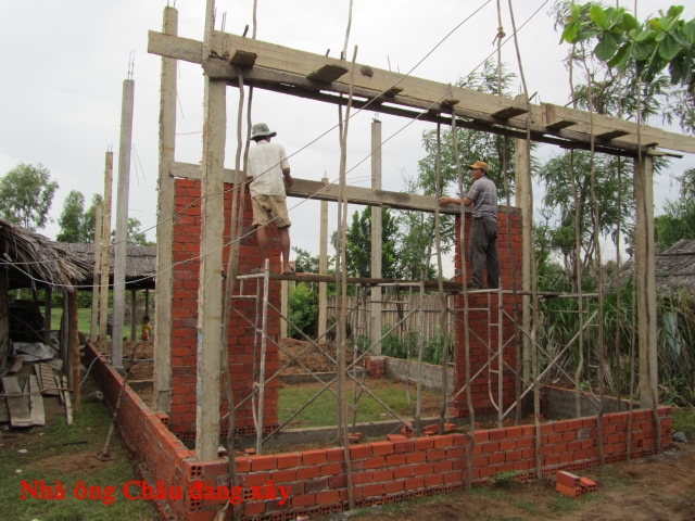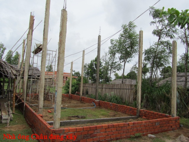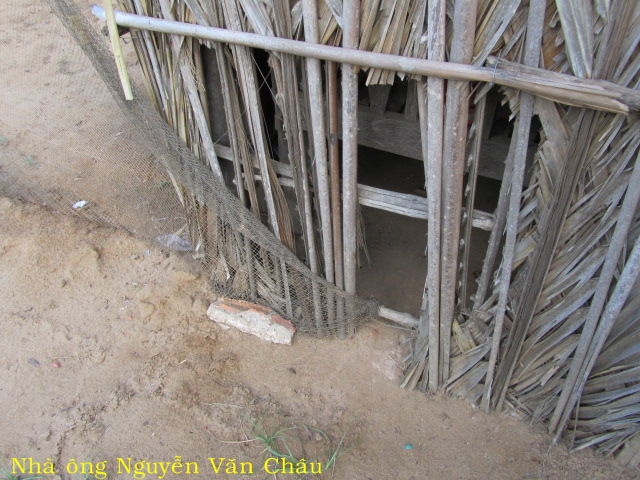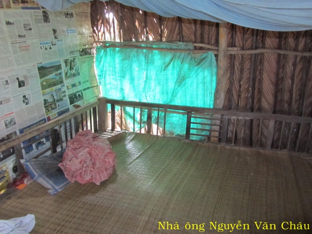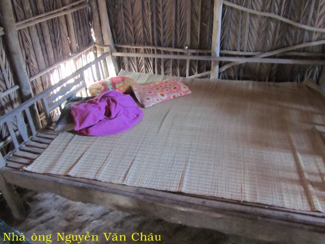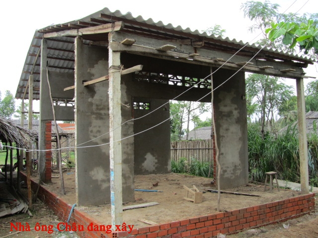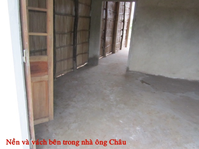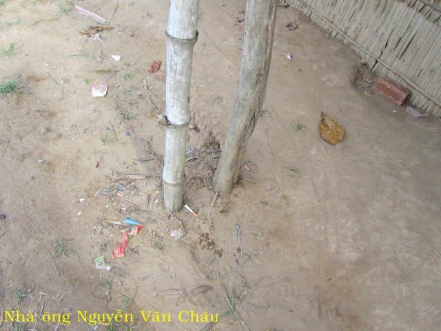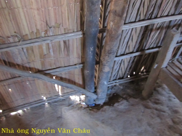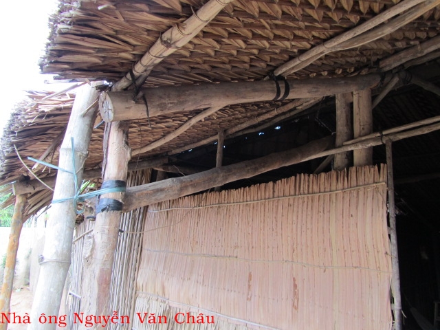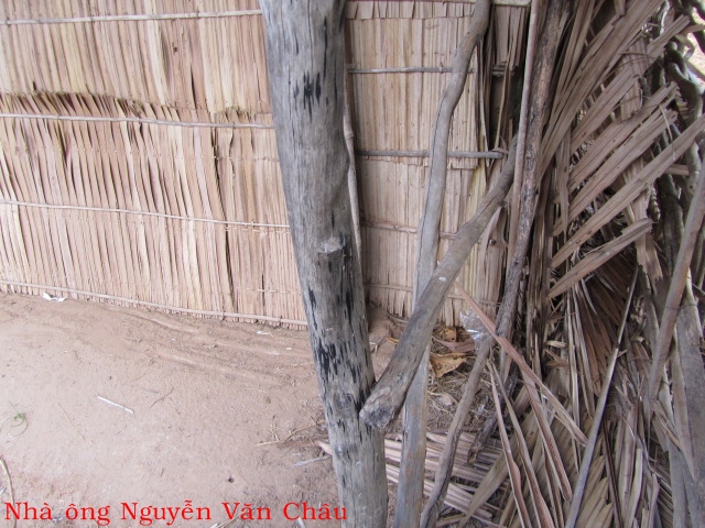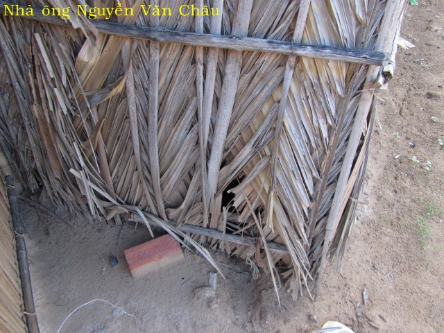 Chau Van Nguyen: Mr Nguyen is 40 years old who lives in the hamlet Thanh Hai of Con Rung. He makes his living by doing odd works for others such as raking weeds, plucking beans. His take-home varies from one day to another - between US$3 to US$5; but the job is not availabe everyday - making his life an unstable one. The pillar of his house was buried and broken at the base. House is not numbered at this point.
