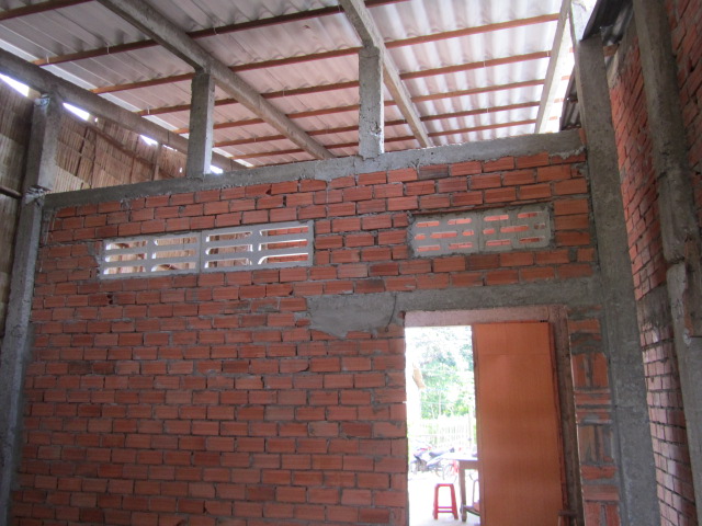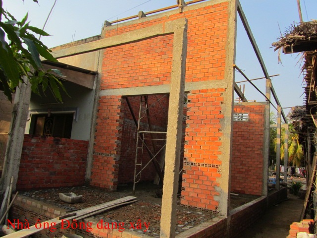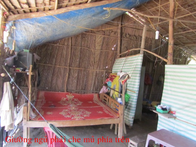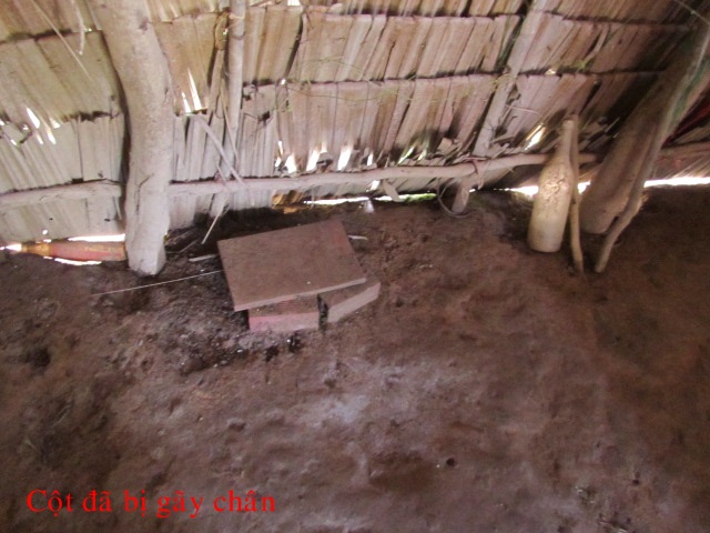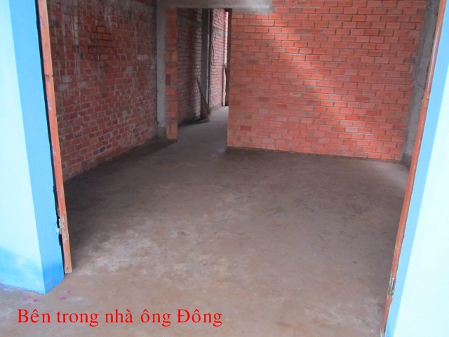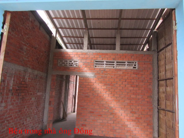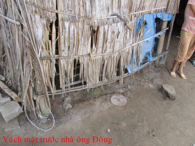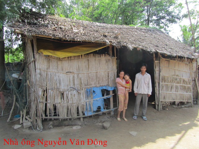 Mr . Nguyen Van Dong, age 31, is residing in a house with no number in Giong Le, Thanh Qui, Thanh Phu Village, Thanh Phu County, with his wife and their child. He does odd job for a contractor, making 3 to 4 dollars a day, but it’s not a regular job. His wife pastes Buddha pictures and makes about 7,000 to 10,000 VN Dong (30 - 50 cents US) a day. Their house is on the verge of collapse and they cannot afford to rebuild it