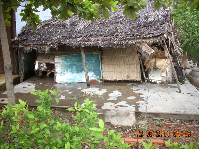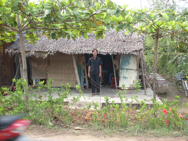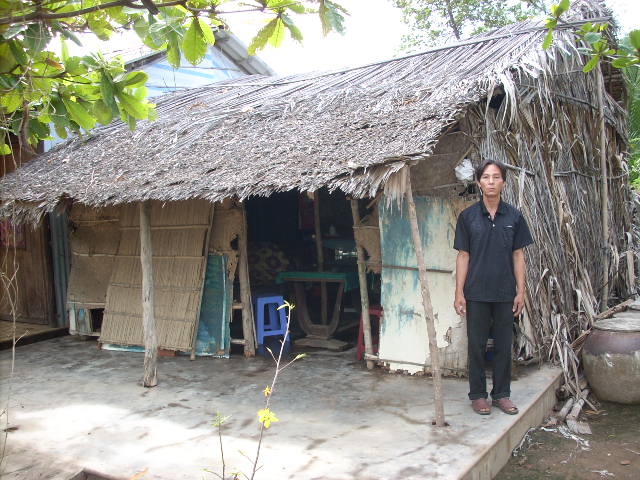 Mr. Nguyen Van Van, age 42,is residing at Hamlet 10, Thanh Phu, Ben Tre with his wife and his 15 year-old daughter who has dropped out of school. With no money and little education, they have no stable job and can only work for hire, doing odds and ends. His house was leaning and about to collapse under strong winds but he could not afford to have it fixed and they are now putting up provisionally at his wife’s family.