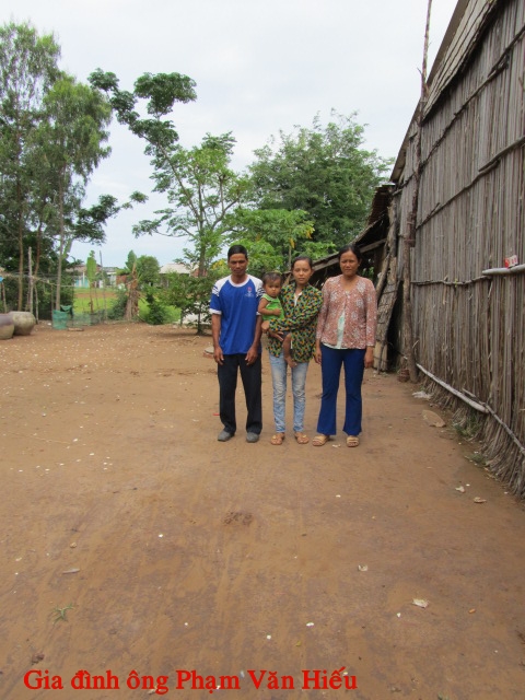 Ông Phạm Văn Hiếu 46t chưa có số nhà ở Cồn Rừng xã Thạnh Hải huyện Thạnh Phú. Gia đình có 4 người ông bà, con gái và cháu ngoại. Đứa con có chồng và 1 con đã thôi chồng hiện tại về ở chung vơi ông bà. Hiện tại gia đình không ruộng đất,đang ở đậu nhà bà con. Lúc trươc cả nhà lên Long Khánh lập nghiệp nhưng đã qua mây năm mà cũng không có tiền nên về quêlàm thuê mà sống. Ông Hiếu thì bị điếc nên chủ thuê với giá rẻ, đứa con gái lúc trước lên Thành Phố làm giờ bị bệnh tim nên chủ không thuê nửa phải về quê chờ ai thuê gì thì làm nấy, vợ thì đi nhổ cỏ cắt đọt sắn hay làm dưa thuê. Thu nhập gia đình chỉ đủ sống hàng ngày, nhà đang ở đậu mà không có tiên cất lại.
