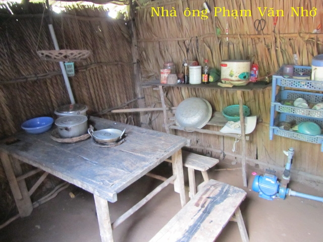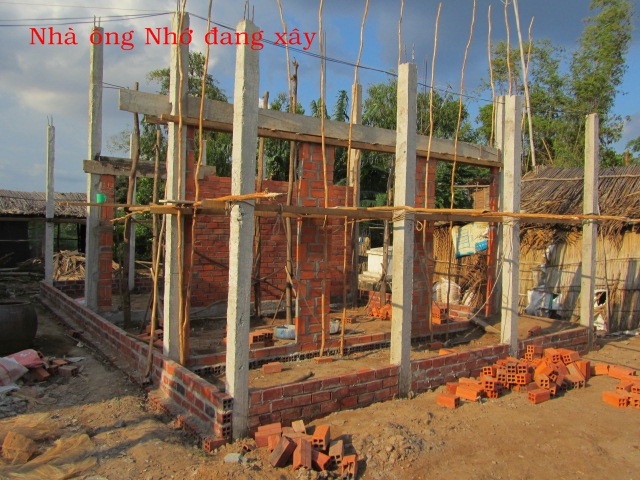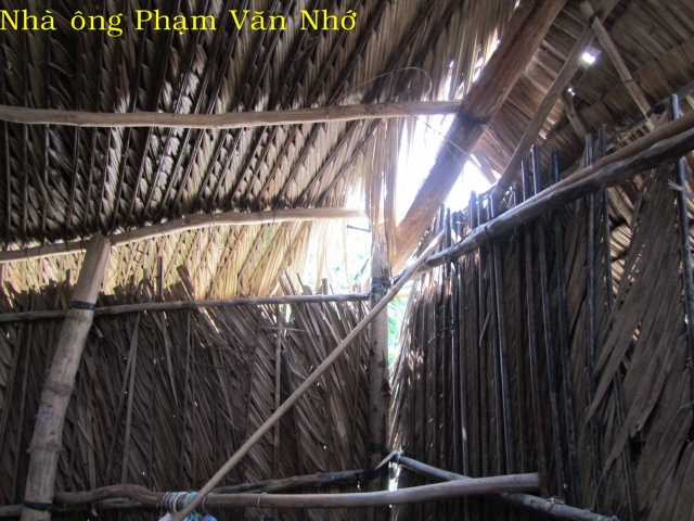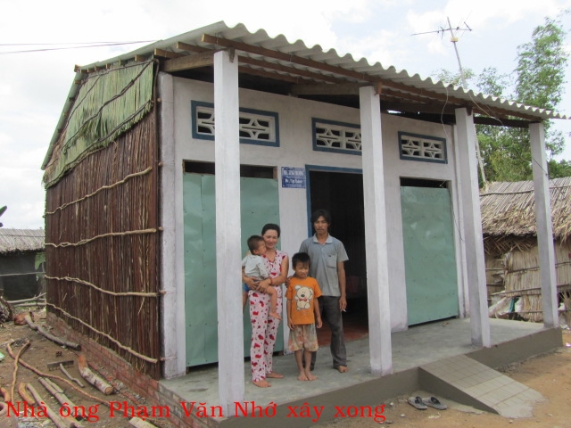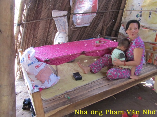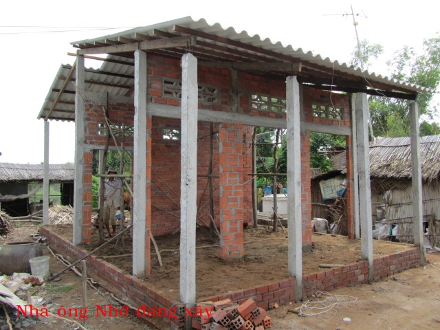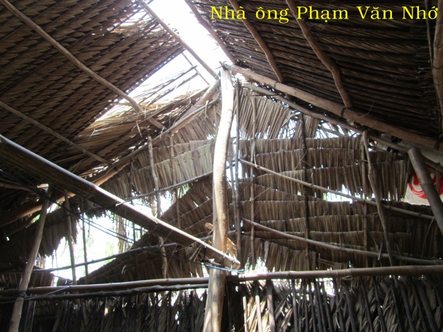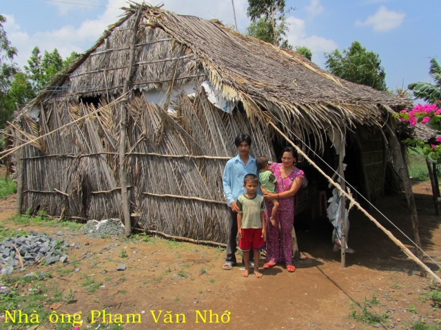 Mr. Pham Van Nho, age 32, is residing at Hamlet 1, Thanh Hai Village with his wife and 2 children. He is working for hire while his wife threads beads at home. just enough to feed themselves. Their house is on the verge of collapse at a wind gust unless supported by strong cords.
