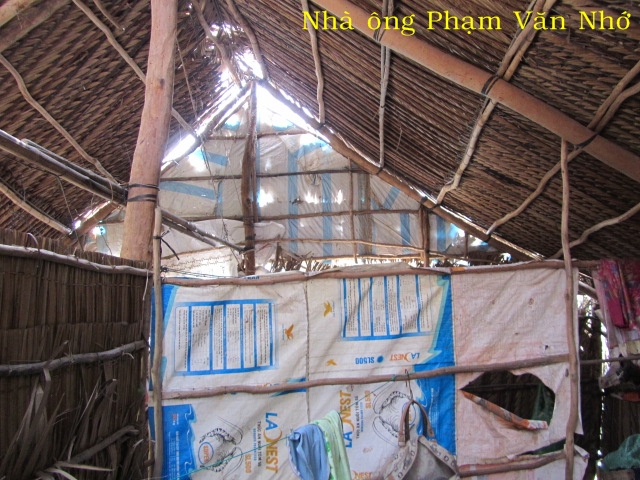 Phạm Văn Nhớ 32 tuổi ở ấp 1 xã Thạnh Hải, có vợ và 2 con. Hàng ngày ai thuê gì thì làm nấy. Vợ ở nhà nhận kết cườm. cuộc sống chỉ đủ gạo ăn. Nhà bị dột nát nếu không có dây đổi thì sẽ bị sập bất cứ lúc nào không cần đợi gió.
