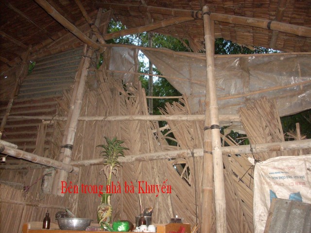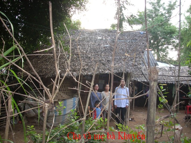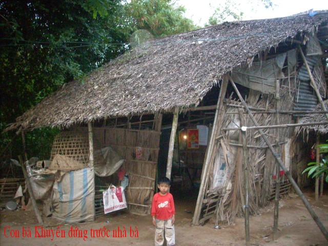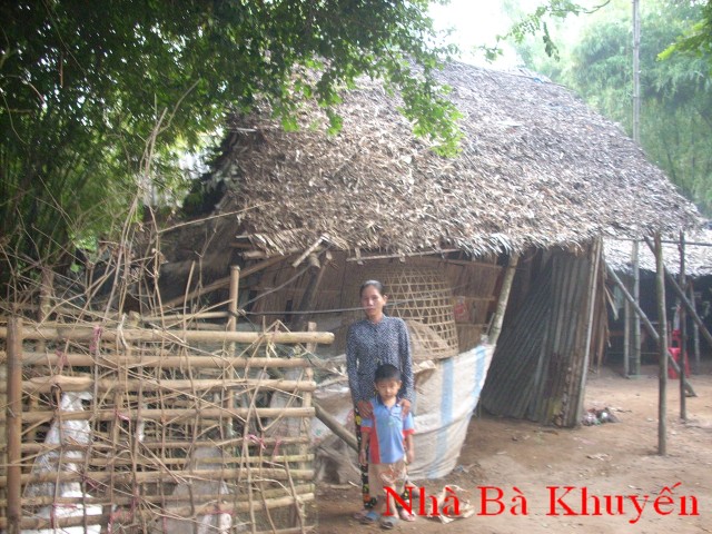 Mrs. Tran Thi Thu Khuyen, age 35, is residing at 400/2 Thanh Qui B Hamlet, Binh Thanh Village, Thanh Phu, Ben Tre. She has two sons, the older, age 15, dropped out of school at grade 9 to work for his aunt in Dong Nai, and the younger age 4, is in kindergarten. Her husband left the family 4 months ago. She has no land to toil and no money to do business. Every month she takes a loan of $VN 1,000,000 ($50)to do business and has to pay $VN 80,000 (40 cents) for it. She sells poultry, making $VN 30,000 a day. That is hardly enough for the family expenses let alone fees for house maintenance. The rafts are in bad shape, the roof and walls are rotten but she doesn’t have money for repair. Her parents live nearby but cannot help since they themselves are very poor. She badly needs help.