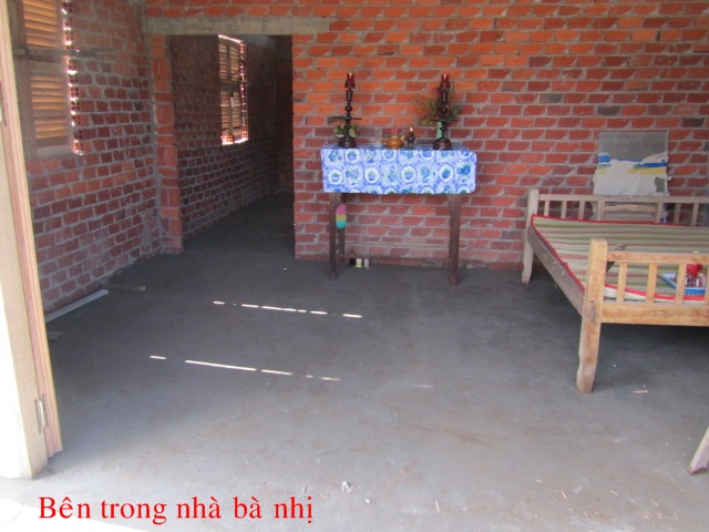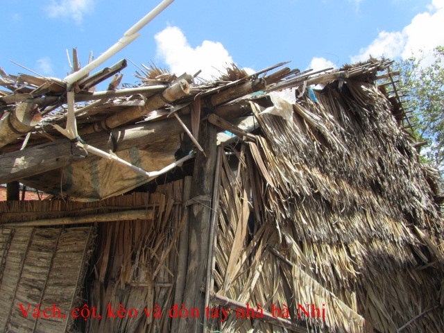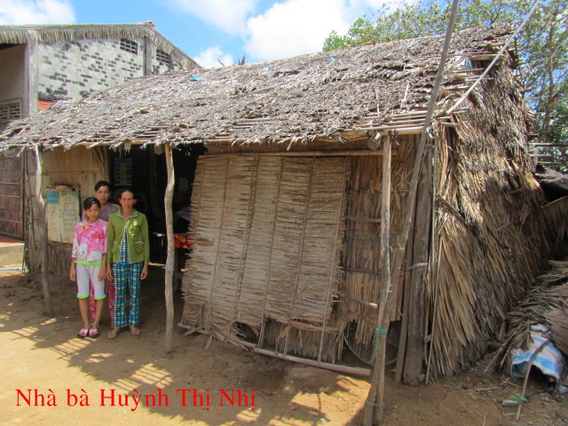 Mrs. Huynh Thi Nhi, age 54, is residing at 200/2 Thanh Phuoc Hamlet, Thanh Phong Hamlet, Thanh Phu, with her daughter and grandchild. Her husband passed away and she has no land to toil on. Every day she works the land and pulls weeds for hire, Her daughter goes to the city, doing labor work due to her low level of education. The family live on a day to day basis from the little money they make. Their old house is on the danger of collapse and they have no money for repair or rebuild it.