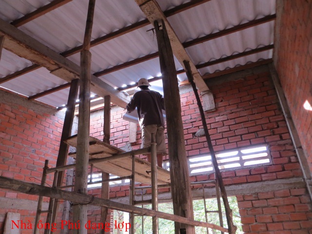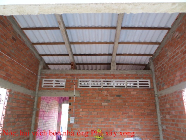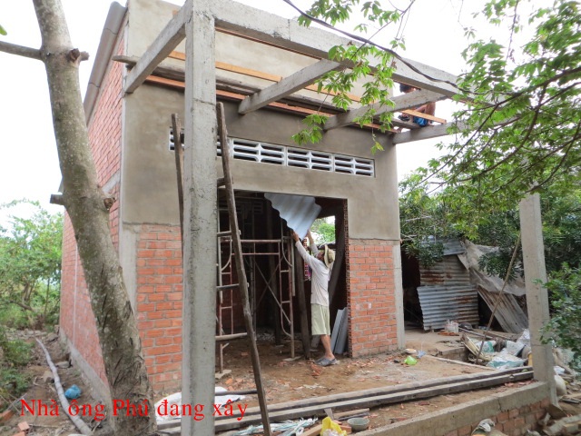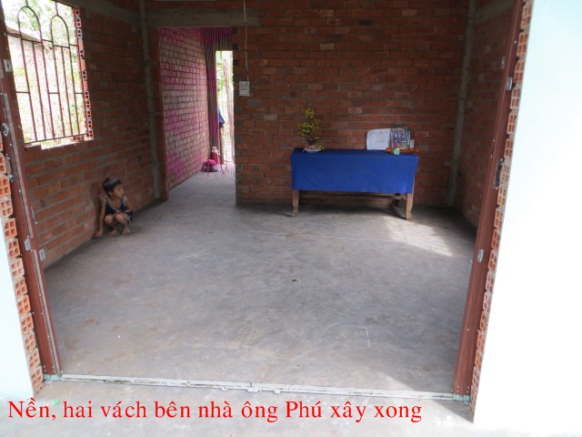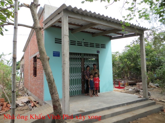 Mr. Khau Vinh Phu, age 38, is residing in a house with no number at Hamlet 4, An Thuan Village, Thanh Phu witth his wife and their 2 children. He works for hire but his job is not regular. His wife sews beads patterns and makes one dollar (1USD) a day. The house collapsed more than a year ago but they could not afford to fix it. The house they are currently living in is actually a shelter covered with iron sheets given by neighbors.