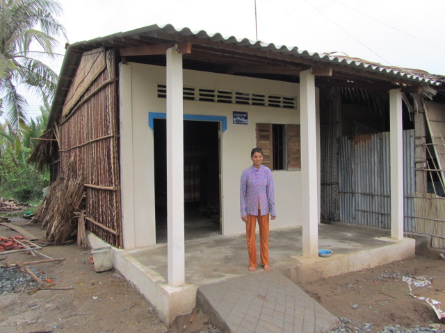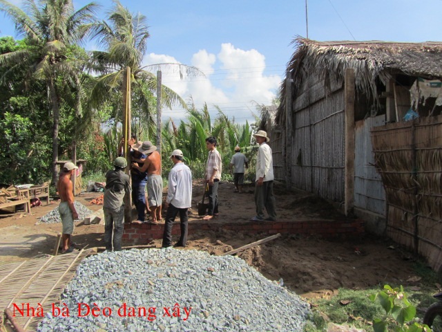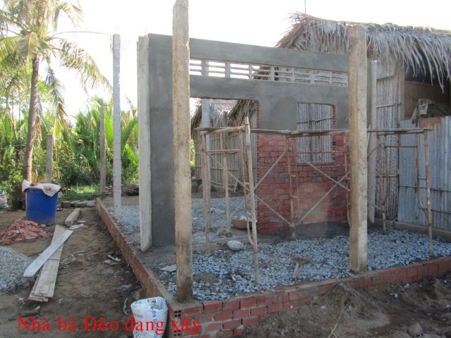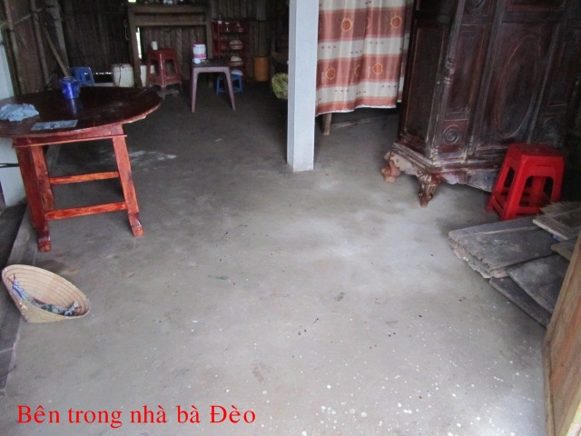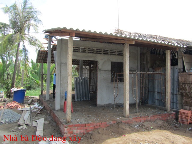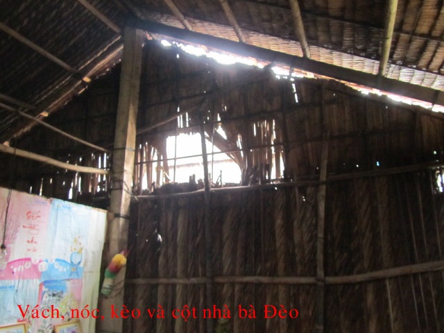 Mrs. Le Thi Deo, age 50, is residing at No. 28/2 in Cau Van, Giao Thanh Village, Thanh Phu. This 10 year old house was given by her parents and now is about to collapse, and she doesn’t have money to rebuild it. She is living with her nephew who is working away from home. He doesn’t have much education and is not making good money. Mrs. Deo works for hire, carrying soil for people and makes about 2 dollars a day but it’s not a regular job. Besides, having light mental problem, she is seldom hired to work.
