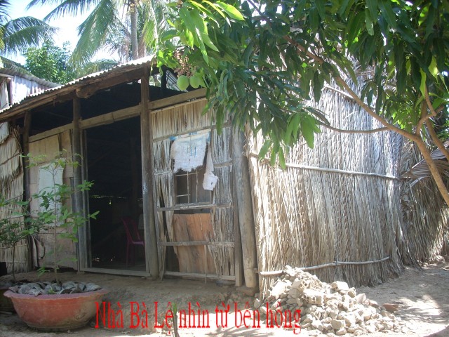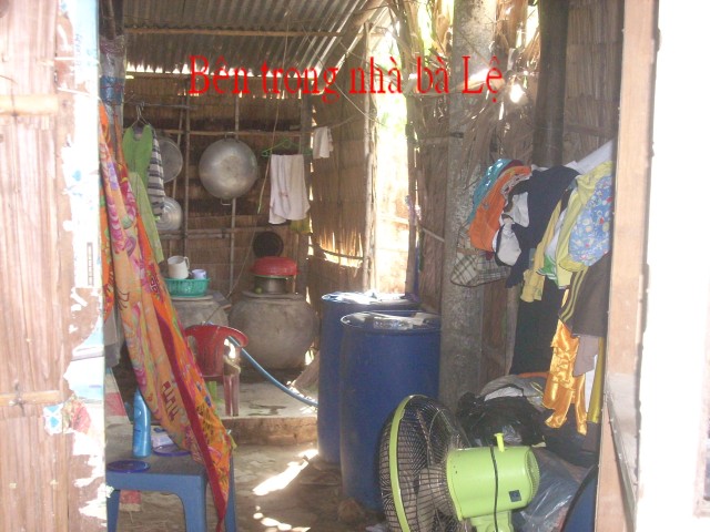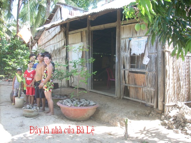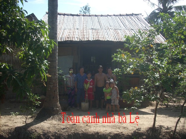 Bà Nguyễn Thị Lệ, 53 tuổi chồng bà ông Đào Văn Dũng 52 tuổi. Cư ngụ tại 302/1, ấp Thạnh Trị Hạ, Thị Trấn Thạnh Phú, huyện Thạnh Phú , tỉnh Bến Tre. Chồng bà chạy xe honda ôm, mỗi ngày được 60.000 đồng (3 đô), còn bà đi bán vé số kiếm được 50.000 đồng. Nhưng bà bị bệnh khớp nên không còn đi bán được nữa. Các con bà cũng không nghề nghiệp gì cũng ở chung một nhà. Những cây kèo, cột mục gãy phải chắp cây khác vào để khỏi ngã đổ. Nhà bà có thể ngã mỗi khi có gió lớn. Ngày vào chụp hình thì còn thiếu chồng bà và đứa con trai út. Bà mong có được căn nhà để ở che nắng che mưa được an toàn hơn.
