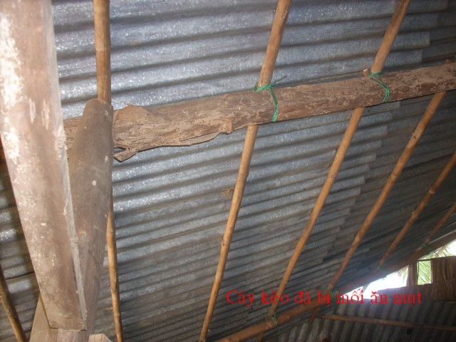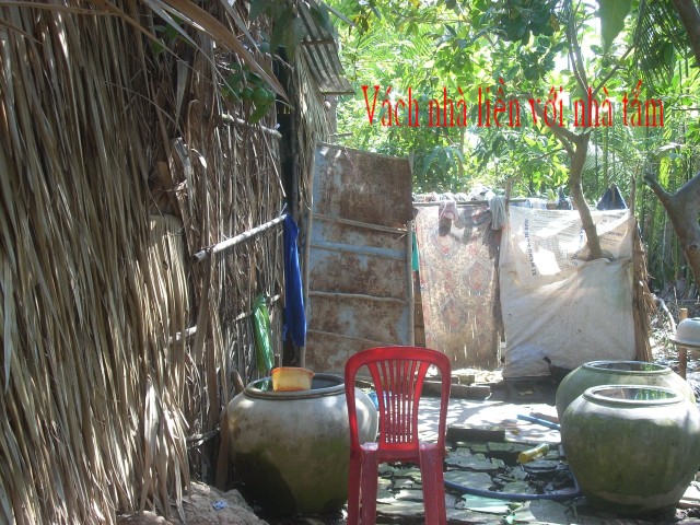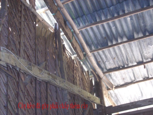 Mrs. Nguyen Thi Le, age 53, and her husband Dao Van Dung, age 52, are residing at 302/1 Thanh Tri Ha Hamlet, Thanh Phu Town, Thanh Phu, Ben Tre. Her husband transports people on his scooter, making $3 a day and she sells lottery ticket, making $2.5 a day but has to stop due to rheumatism. Their children stay with them, having no jobs to work on. The rotten rafters and pillars in the house are patched up with pieces of wood to prevent from collapse at strong winds. The husband and youngest son were absent at the time the picture was taken. She hopes to have a house for the safety of the family.