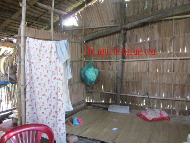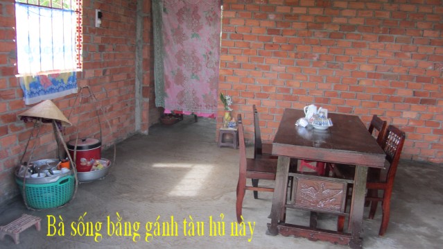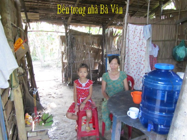 Mrs. Nguyen Thi Thanh Van, age 48, is residing at house No 7/3, Thanh Tri Thuong hamlet, Thanh Phu Village, Thanh Phu. She has 2 children: a son, age 20 and a daughter, age 7. Her son is working for hire in Binh Duong and just making enough to support himself. Her daughter is currently in grade 2 at school. Her husband has left her and she is selling sweet bean curd for living, making 4 dollars a day, just enough to feed her family. Her house is crippled with broken pillars and rotten leaf walls and can collapse any time. The only valuable thing in the house is the bed for mother and daughter to sleep on.