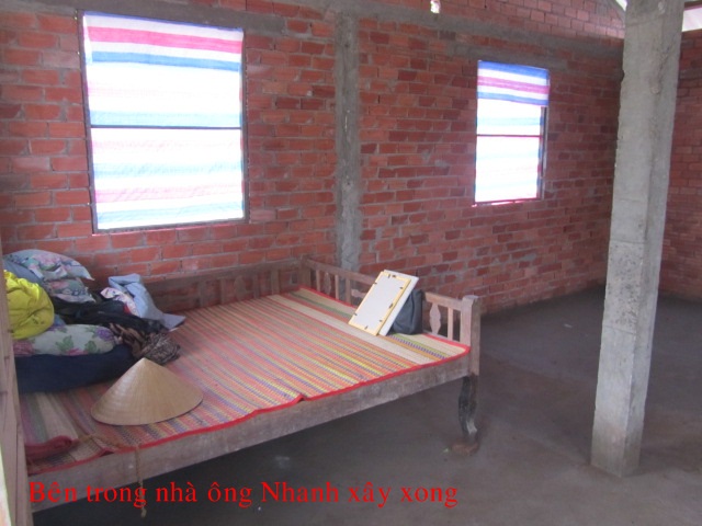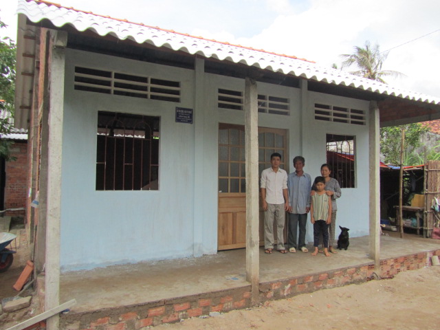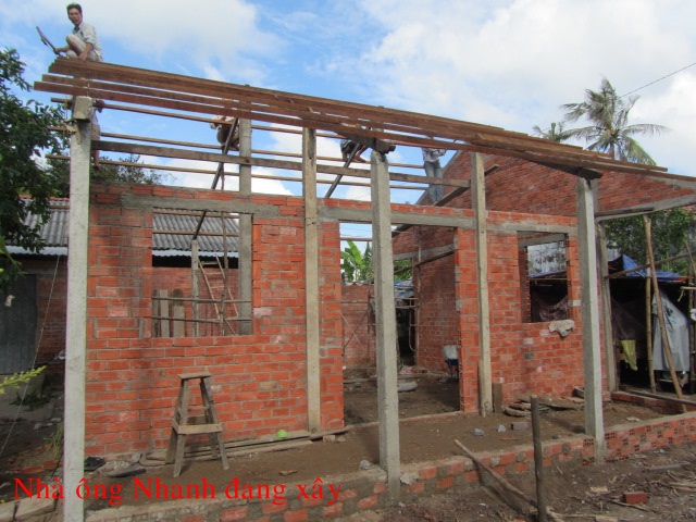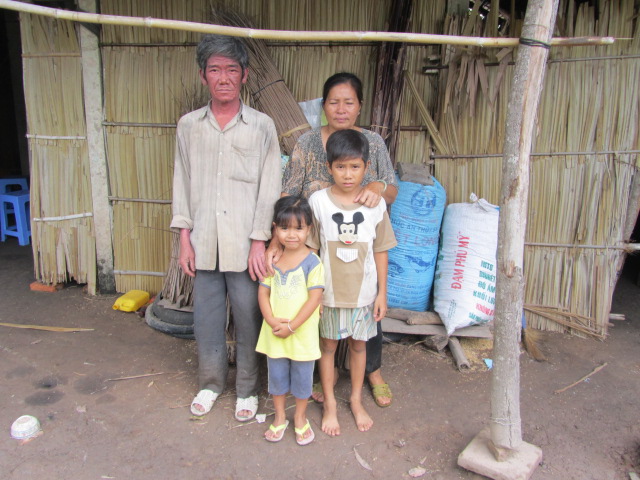 Mr. Tran Van Nhanh, age 49, is residing at Giong Ot, An Thuan Village, Thanh Phu. The family of 5 owns no land. The oldest son had to quit his study at the College to work as a Mason helper. Mr. Nhanh cannot work due to his skin allergy. His wife is working as Dish washer at a restaurant, making 1 dollar a day. They are putting up at a relative’s house and badly need a place of their own to live.